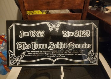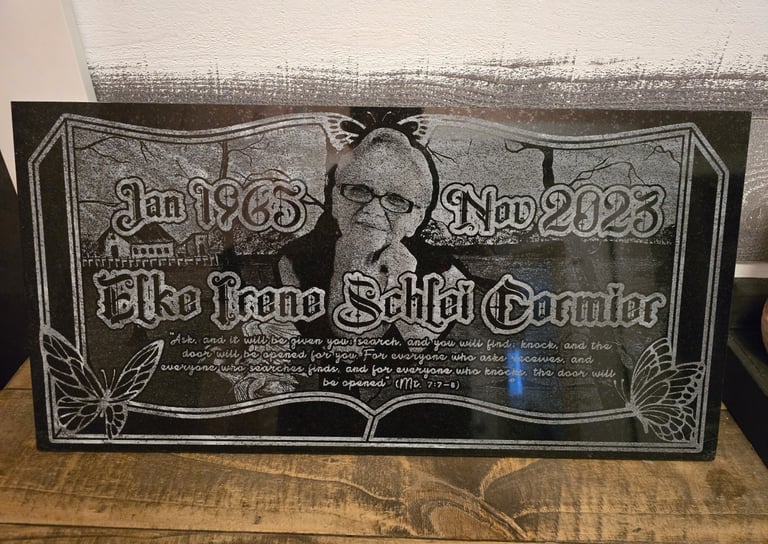 At Tru Fury LLC, we create custom memorials with care, honoring everyone including our veterans and supporting our community through heartfelt craftsmanship and advancing technology.